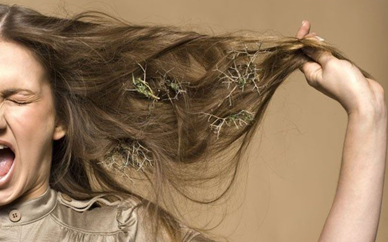 Тракційна алопеція від тугих хвостів: фолікули атрофуються на скронях. Гарячі плойки, фарби – опік цибулин. УФ і забруднення окислюють, як іржу на металі.