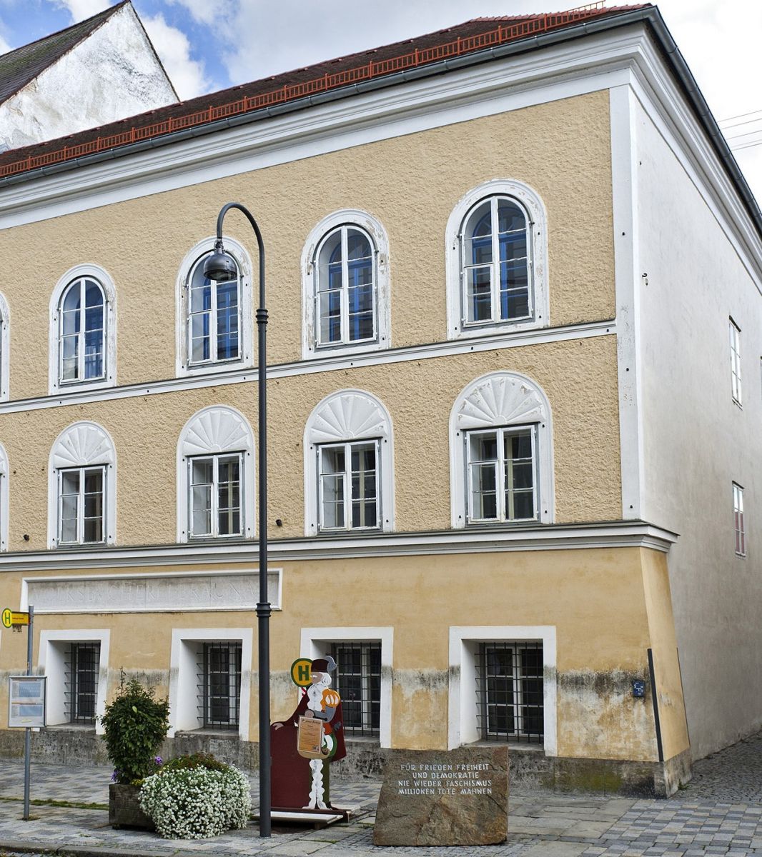 Та Гітлерова тінь не зникла. Перед будинком народження стоїть гранітний камінь з Маутгаузена — концтабору смерті. Напис гримить: “За мир, свободу і демократію. Ніколи більше фашизму. Мільйони мертвих нагадують”. Місцеві, як і весь світ, борються з спадщиною, перетворюючи прокляття на урок.